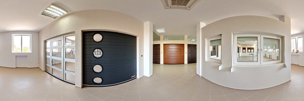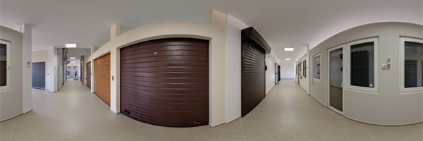 Industrial sectional garage doors and top mounted roller shutters virtual tour, inside view